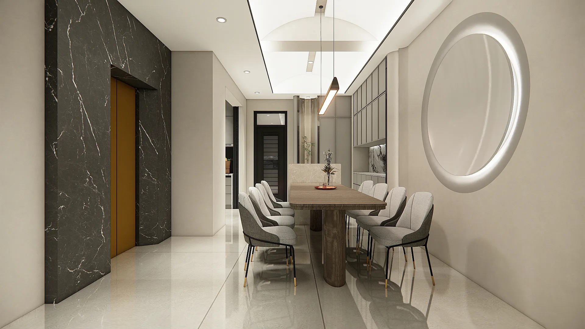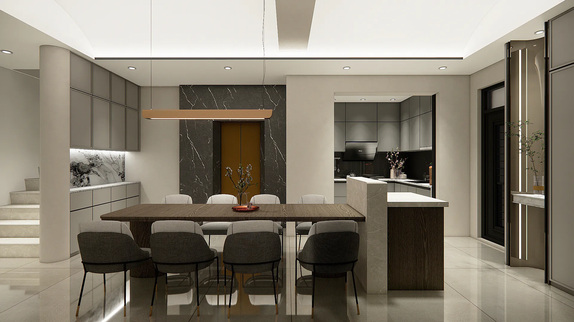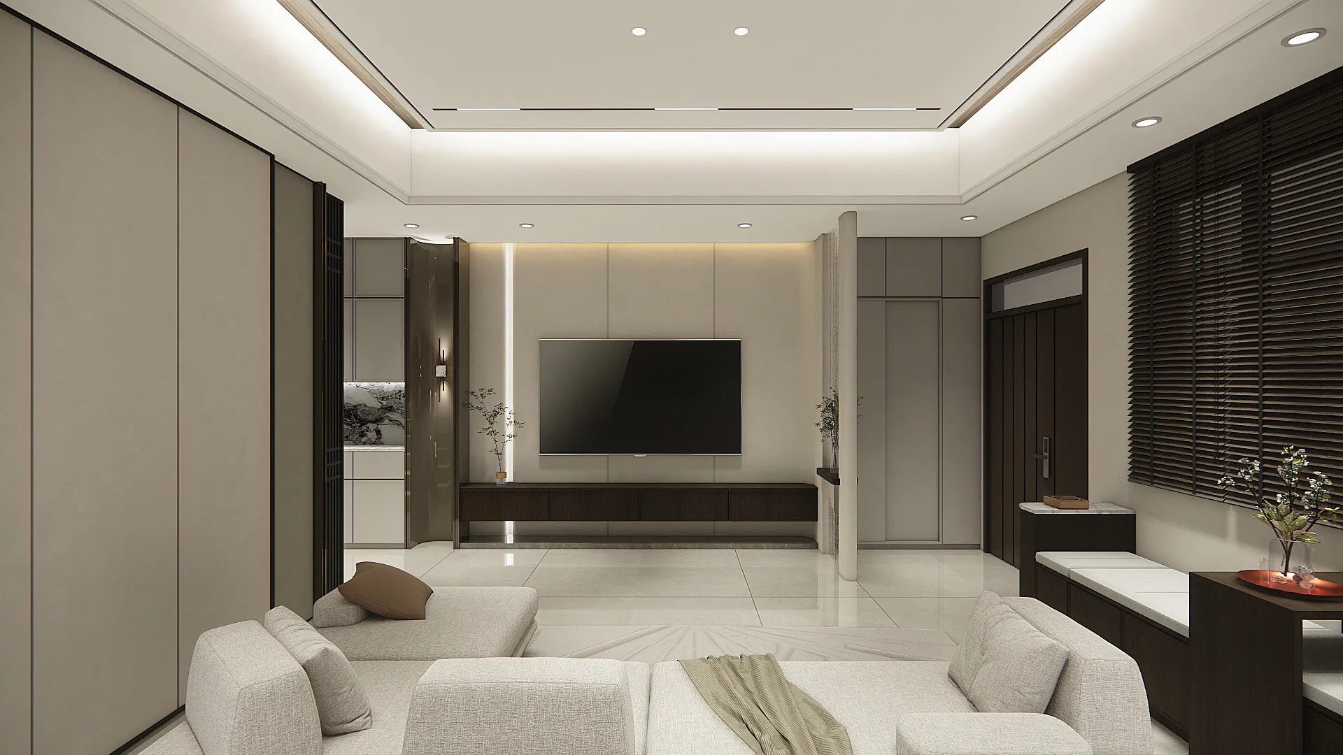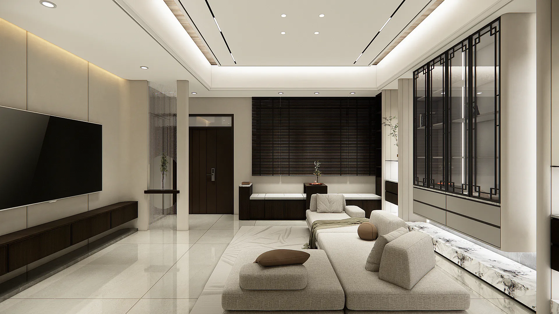 機 能 ︱ 住宅 型 態 ︱ 老屋翻修 坪 數 ︱ 35坪風 格 ︱ 現代 x 新中式 語 彙 ︱ 墨色與留白對比、石材紋理牆面、木質語彙、框架空間界定∷輕盈若禪意,拂去塵囂;沉著如墨痕,映照心境。空間於淡而有味的留白中,化為一處雅致的棲居。 在木與石的對話裡,承載時間的靜默;在灰與白的映襯間,安放生活的詩心。不以繁飾取勝,而以簡境見深意,讓居者於日常裡,得以安然靜心。