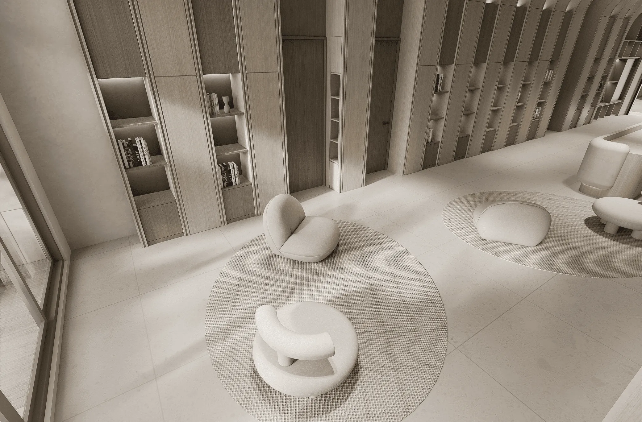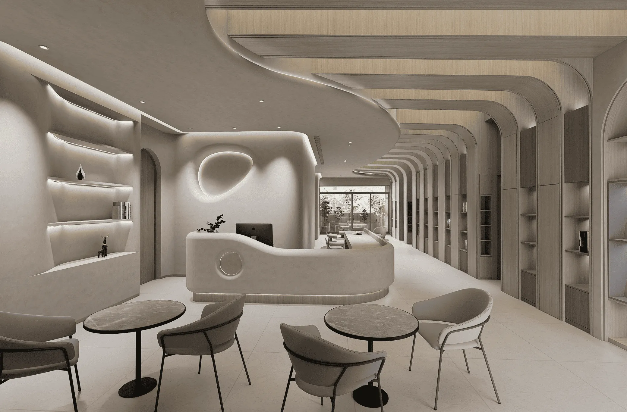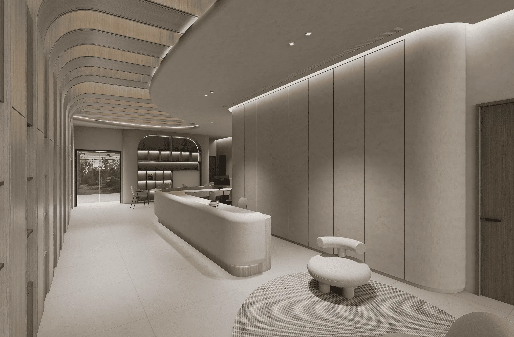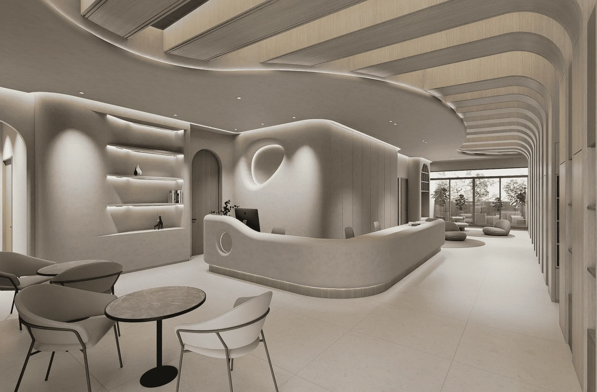 語 彙 ︱ 弧形立面、淺木紋飾面、拱形框架、光帶設計