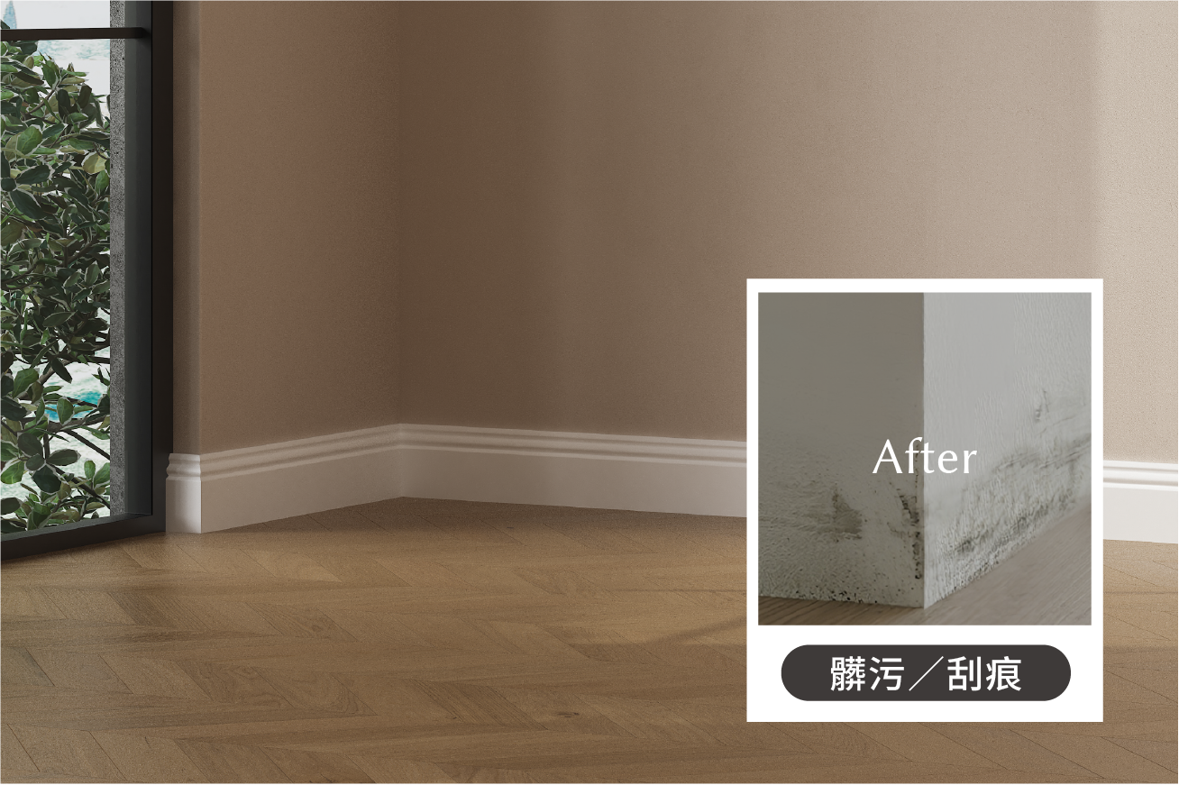 無踢腳板追求的是牆地一體的純粹視覺,但在實際生活中,牆腳仍是最容易受損與累積髒污的位置。